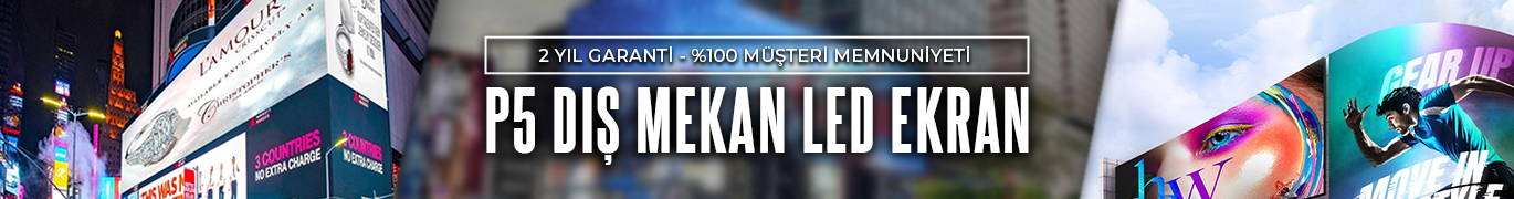 | En yakın izleme mesafesi 5 metre olan P5 Dış Mekan LED Ekran yüksek çözünürlüğü nedeniyle tercih edilmektedir. 16 cm yükseklik 32 cm genişliğinde olan P5 Led paneller ile üretilen P5 dış mekan LED ekranlar IP65 yalıtım standartlarına uygundur. Bu nedenle yağmur ve kar gibi hava şartlarında sorunsuz olarak çalışmaktadır. Ayrıca yüksek ışık şiddeti ve LED'lerin önünde bulunan maskeleri ile de güneş ışığını aldığı zamanlarda kırılmayı en aza indirerek net görüntü vermektedir. Bilgilendirme panoları, bina ön cepheleri, mağaza dış tabelaları gibi açık hava reklamcılığının yapıldığı birçok alanda kullanılmaktadır. Wi-Fi Bağlantı veya CAT-6 bağlantısı ile anlık veri gönderimi yapılabilen P5 dış mekan LED ekranlar ile ile ürün tanıtım videolarını ve ürün görsellerini başarılı bir şekilde yayınlayabilir ışık şiddetinin yüksek olması nedeniyle de dikkat çekiciliği arttırabilirsiniz. Led ekran teknolojisi ile firmanızı öne çıkarabilirsiniz. |